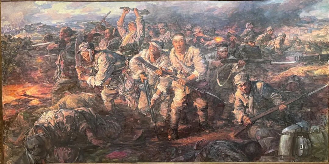 张庆涛、秦文清油画《浴血刘老庄》,刊登于《人民日报》2025年9月3日20版副刊。