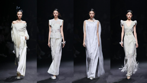 流苏随步履轻盈摇曳,绒花如星辰点缀衣间,传统非遗与当代东方设计交织共鸣,仿佛展开一场跨越时空的女性对话。本系列延续品牌一贯对女性力量的深入探索,融汇传统工艺与现代设计,聚焦“日常礼服”概念,打破日常穿着与场合着装之间的界限,赋予女性日夜间从容流转的优雅与表现力。NUNU NONO在国际时尚语境中,持续勾勒中国品牌独特的精神图景——以爱与成长书写当代女性的生命叙事。